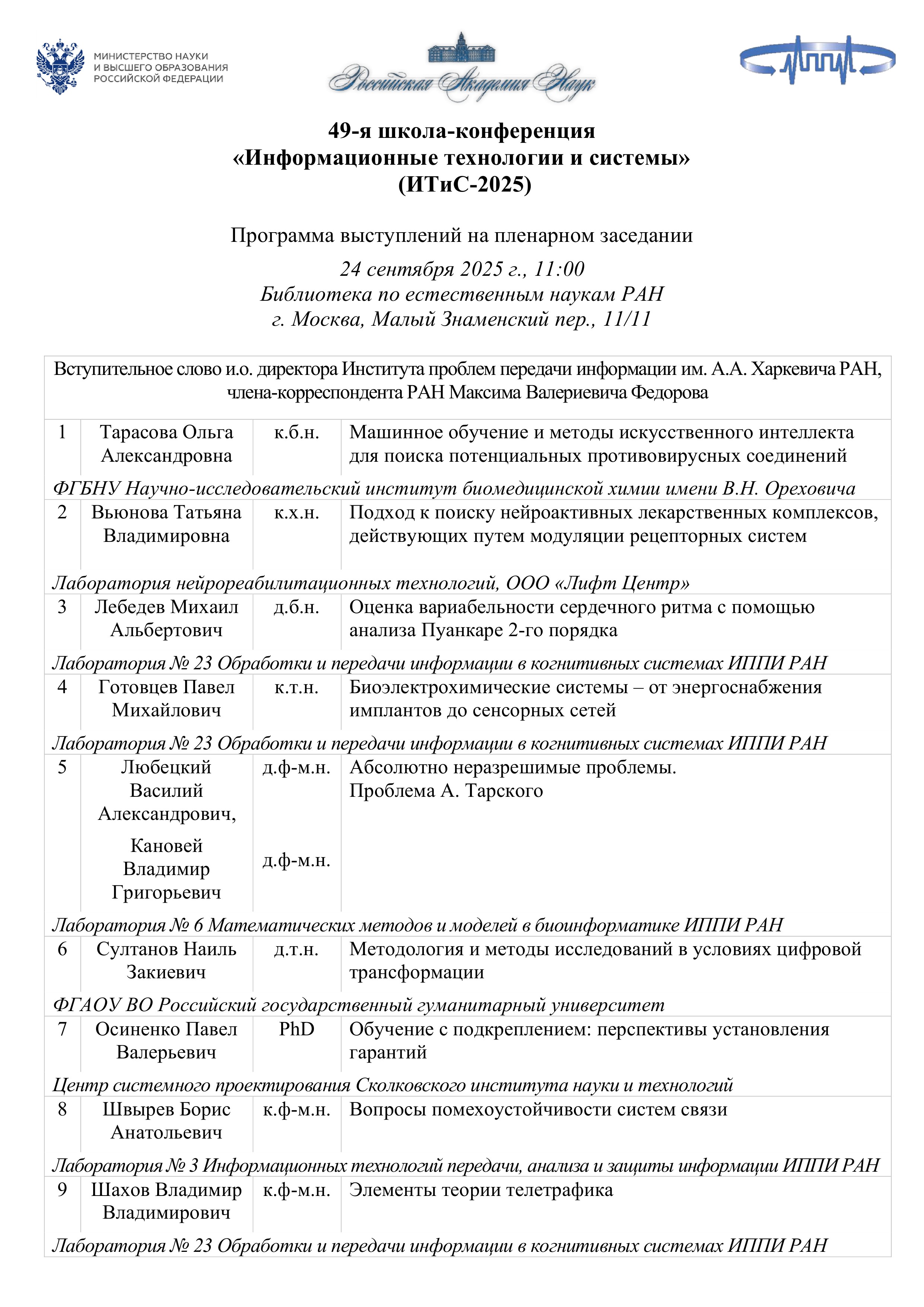 С 24 по 26 сентября 2025 года пройдет 49-я школа-конференция «Информационные технологии и системы» (ИТиС) – одно из старейших и самых авторитетных научных мероприятий в России для молодых исследователей в области IT и смежных дисциплин. Организатором конференции традиционно выступает Институт проблем передачи информации им. А.А. Харкевича РАН (ИППИ РАН).