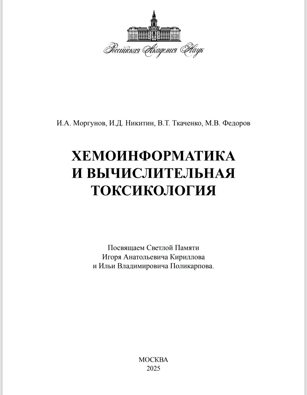 Вышла в свет монография «Хемоинформатика и вычислительная токсикология», подготовленная коллективом ученых Института проблем передачи информации им. А.А. Харкевича РАН И.А. Моргуновым, И.Д. Никитиным, В.Т. Ткаченко и М.В. Федоровым.